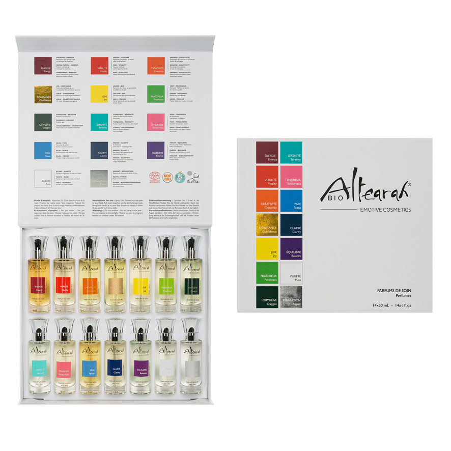 ALTEARAH natuurlijke emotie geurenset is een eenvoudig, duidelijk en speels antwoord op ons dagelijks verlangen naar wellness, schoonheid en een goed humeur!